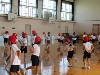 ダンスと並行して、国語で学習した「スイミー」のお話にそって、赤い魚たちやスイミー、海の生き物たちの表現運動の練習もしています。