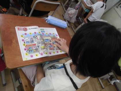 アルファベットの発音を教わったり、イラストの中からアルファベットの文字を探したりしました。
