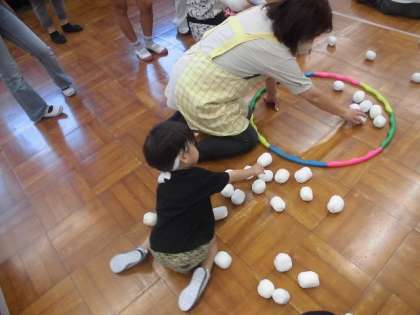 一緒に体操をしたり、バルーンを使って遊んだりと、楽しい時間を過ごしました。