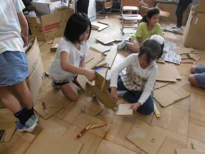ダンボールに切り込みを入れて組み合わせ、色々な形を作りました。
