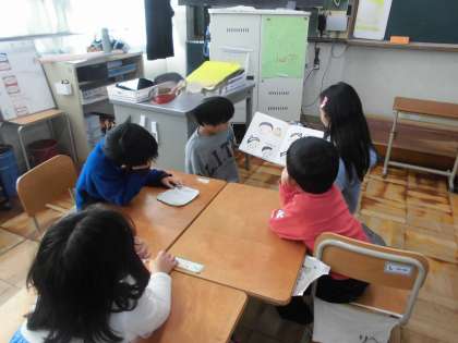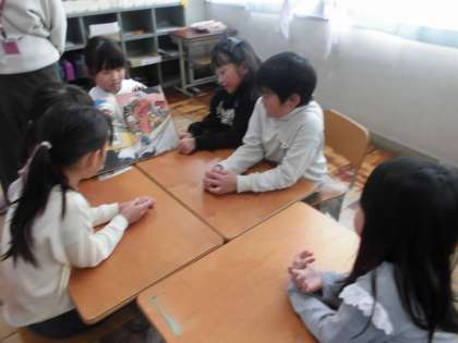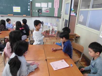 国語の時間に、3年生が読み聞かせに来てくれました。本の持ち方や読み方等を工夫していました。1年生も聞く姿勢に気を付けながら聞き、感想も伝えることができました。とても楽しい時間になりました