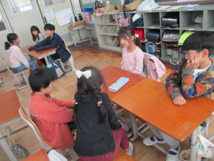 先日の国語の学習で、相談にのってほしいことを思い出し、その中から1つ選びました。そして、話し合いの仕方を学習し、今日は、班の友だちに相談する話し合いをしました。相談して、いいアイデアをもらっていたようです。