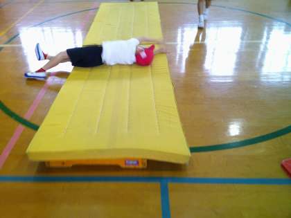 いろいろな場を選んで、マットあそびに挑戦しました。