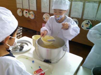 今日は、給食試食会があり、子どもたちも給食の様子を見てもらえると張り切って、当番の仕事をしたり、準備をしたりする様子が見られました。