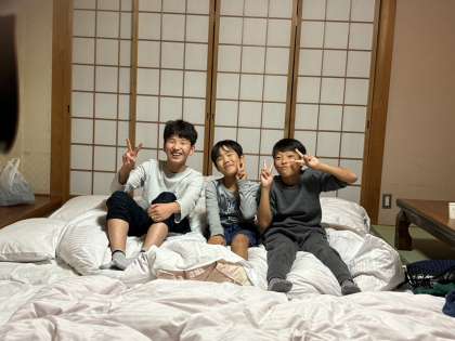 就寝前に部屋のみんなと写真を撮りました。