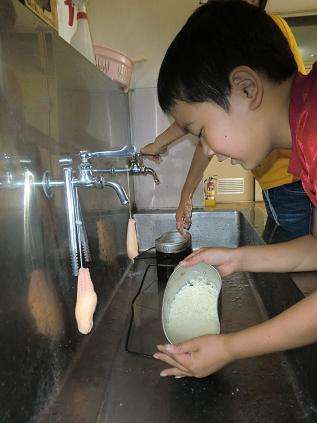 山の家にむけて、校内にある炊事場にてカレー作りをしました。