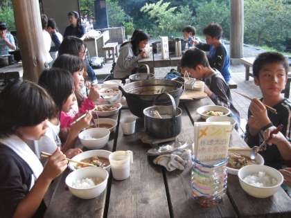 後片付けもばっちり。早くできた班は他を手伝ったり,かまど回りやテーブルの下などていねいにそうじしてくれました。