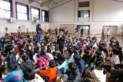 最後には,再び体育館に集まって終わりの会をしました。
