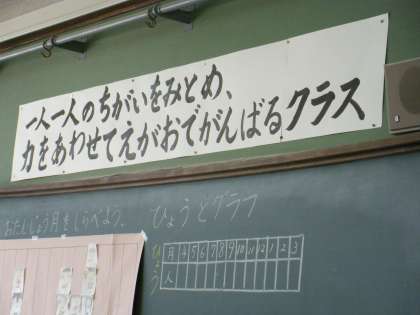 2年1組の学級目標は「一人一人のちがいをみとめ,力をあわせて えがおでがんばるクラス」です。毎日笑顔で頑張って欲しいと思います。