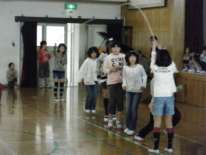 六年生がボールを使って相手に上手にパスしたり,大縄跳びを使って器用に跳んだりしてくれました。