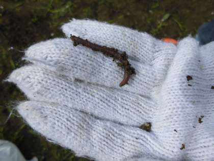 今日は生活科の学習「春を見つけよう」で畑に行きました。草を引くと土の中から幼虫やミミズが姿を現し,じっくり観察していると,ミミズを手のひらにのせて『大蛇だ!』って声も聞こえてきました。んっ?大蛇?大蛇にしてはずいぶん小さいけれど,手のひらにのせて仲良くなれたことすごいですね。土の下の小さな生き物との出会いに,いろいろ感じることができました。
