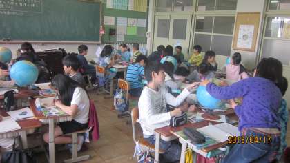 4月17日(金)の社会科の授業で,地球儀を使って学習しました。子どもたちは,世界の大陸や海洋の様子を楽しみながら,調べていました。