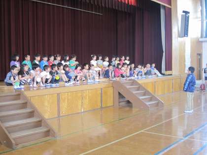 大きな体育館の中で,1年生はしっかり自己紹介ができていました。
