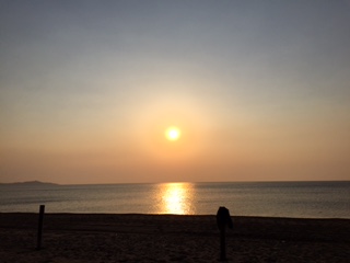 太陽が沈む方に海岸があるので,絶景でした。良く晴れてとても美しい夕日でした。
