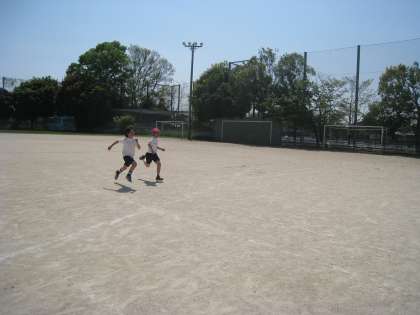 5年生と6年生合同で50mのタイムを計りました。みんな一生懸命走り抜きました。
