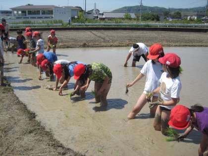 2年生と5年生が田植え体験を行いました。