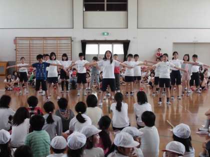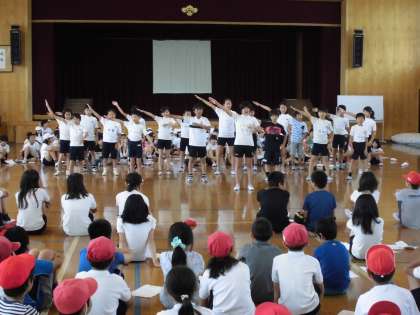 5月20日(水)に,運動会に向けて全校で『結団式』がありました。各色の応援団を中心に応援練習を行ったり,兄弟学年種目「綱ひき・玉入れ・大玉ころがし」の整列確認などを行ったりしました。応援練習では,団長を筆頭に大きな声を張り上げ,運動会に向けて気持ちを高めることができました。全校では初めての応援練習だったため,まだまだ十分とはいえませんが,これから練習を重ね盛り上げていきたいと思います。