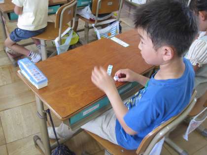 数図ブロックで8の分け方をいろいろ考えていこう。