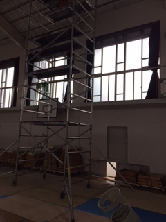 体育館の電球をハロゲンからLEDに代える作業をしていただきました。