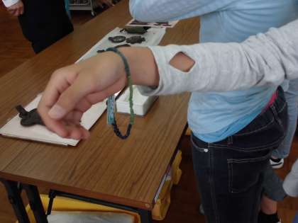 まず,学校で向日市埋蔵文化センターの職員の方に出土品の数々を見せていただいたり,古墳のできた時代にも私たちの先祖がいて,今の私たちまでつながっているということを教えていただいたりしました。