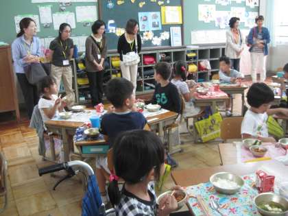 給食を食べている様子を見ていただきました。
