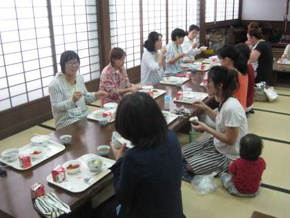 保護者の方には,いろりの間で食べていただきました。