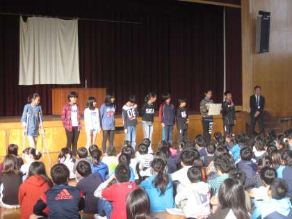 支部大文字駅伝予選会で3位に入賞した6年生の表彰です。