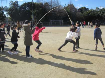 中間休みに大縄大会が行われました。