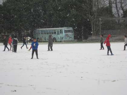 運動場に積もりました。
