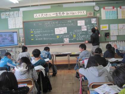 3月1日(火)の5時間目,5年1組に社会科の授業を見に行きました。