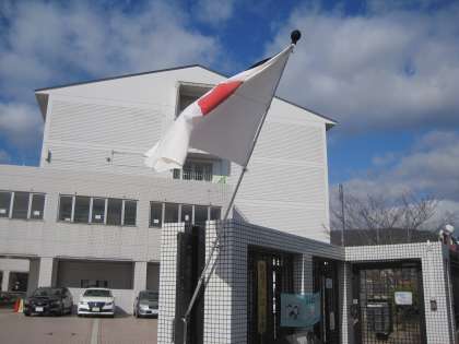 学校の門には,半旗を掲げました。
