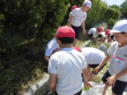 汗だくになりながら,一生懸命に雑草を抜いていました。