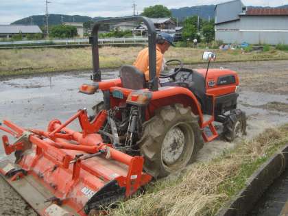 トラクターのエンジンをかけ,しろかきが始まりました。
