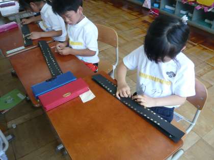 1年生は団体競技「おむすびころりん ばんばんばん」の時,忍者に変身してちょっぴり踊ります。