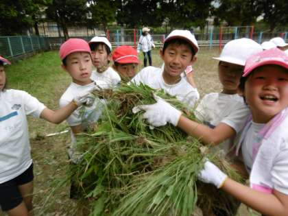 パワーがある4年生は,ゴミ袋7袋分の草をぬくことができました。