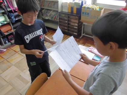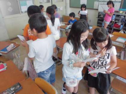 できたリーフレットを友だちと交流し、感想を伝えあいました。