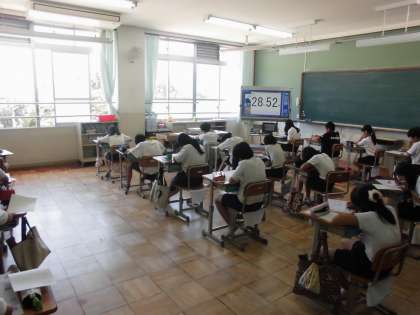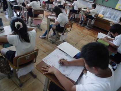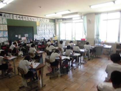 算数の時間には小数×小数の単元の学習のテストを行いました。