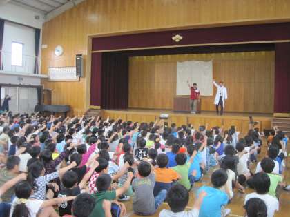 1年生にも,「算数でヨッシャー」の練習をしてもらいました。