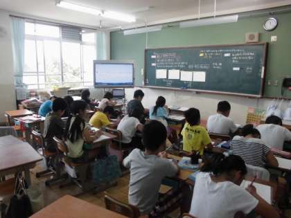 小数÷小数では,学年を均等に3つに分けて,少人数学習を行っています。