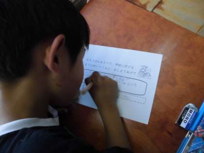そしてどうすればれいじくんは朝ごはんを食べることができるのか考え,れいじくんに一言メッセ—ジを書きました。