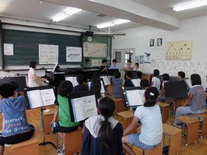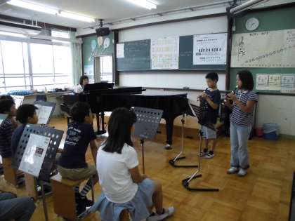 みんなの前でもおたがいの音を感じながら,きれいな音色を響かせることができました。