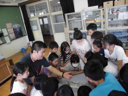 今日はペットボトルの中に水草を入れた簡易的な水槽を各班に用意して