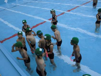 今日は,低水位で学習。ワニ・バタ足・輪っかとお星さまとり をしました。