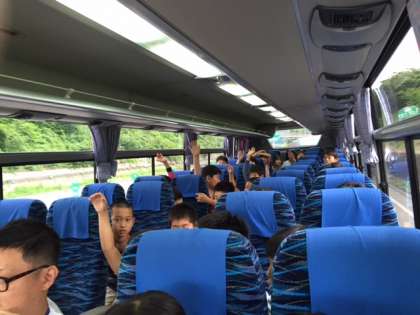 6月24日朝,穏やかな風の中4年生達は元気に学校を出発しました。中庭で出発式をし,バスの中ではいろいろなレクリエーションゲームで楽しみました。このあとは賢島から船に乗り,みさきの家・なかよし港を目指します。