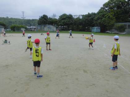 体育の学習で「エンドボール」に取り組んでいます。