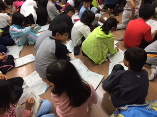 初日の夜,寝る前に一日のふりかえりをします。落ち着いた環境の中で,自分たちの行動,できたこと,守れなかったこと,明日がんばること……しっかり話し合えました。明日の活動もがんばります。