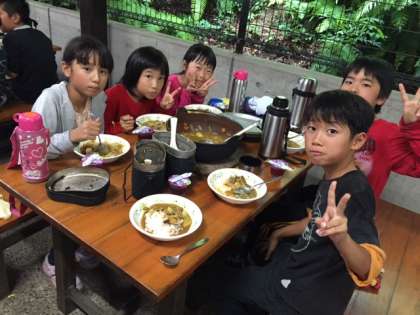 カレーが完成しました。鍋がなかなか煮えなくて苦労しましたが,その分おいしくできあがりました。