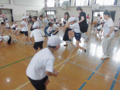 暑い体育館で、飛んで!しゃがんで!のハードな競技でしたが大盛り上がり!