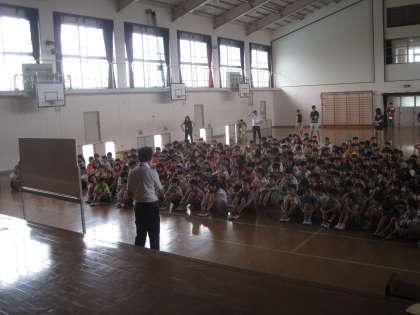 校長が体育館に行きました。