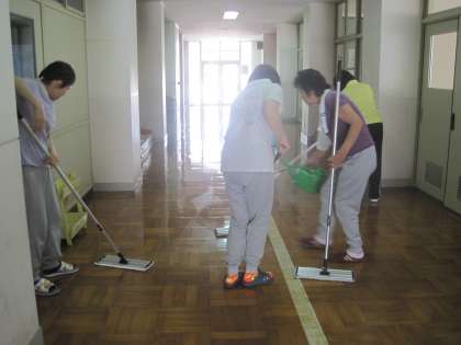 南校舎1階のコミュニティホール,会議室,廊下のワックスがけをしました。